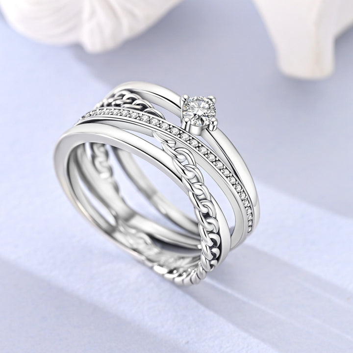 Este moderno anillo múltiple combina varios aros en un solo diseño, simbolizando estilo, versatilidad y creatividad. 🌟💖