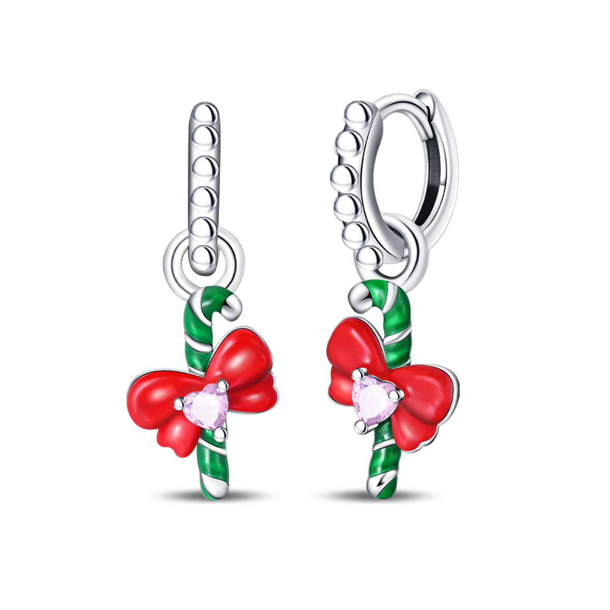 • Los colores predominantes de los aretes son típicos de la Navidad: rojo, verde y blanco, creando un contraste festivo y alegre. Estos tonos evocan imágenes clásicas de decoraciones navideñas, dulces y celebraciones.