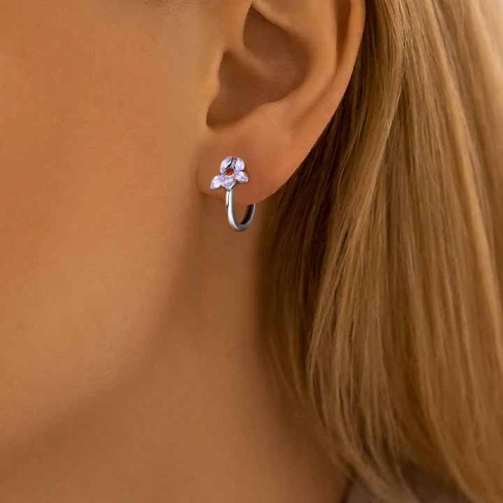 El diseño floral refleja la esencia de la naturaleza en su estado más puro, capturando la gracia y el movimiento de los pétalos al viento. Estos aretes son ideales tanto para el uso diario como para eventos especiales, añadiendo un toque fresco y refinado a cualquier look. Con cada movimiento, los destellos sutiles de los detalles morados evocan la magia y la luz de un día primaveral.