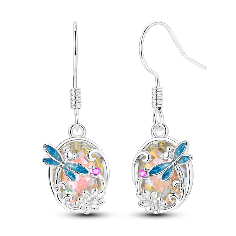 El diseño puede presentar libélulas en una representación realista o estilizada, a menudo con alas detalladas que aportan una sensación de ligereza y movimiento. Los materiales varían desde metales de alta calidad como plata esterlina, oro o acero inoxidable, con detalles adicionales de piedras preciosas, como zirconias, cristales o esmaltes, que dan vida y color a las alas de la libélula.