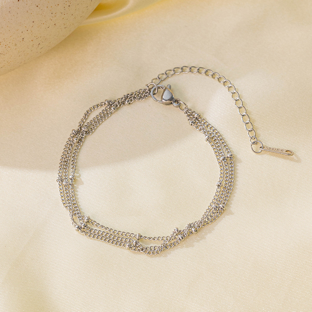 ✨🌙 Brazalete Triple Cadena Delgada Plateada 🌙✨
