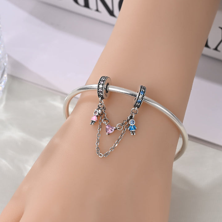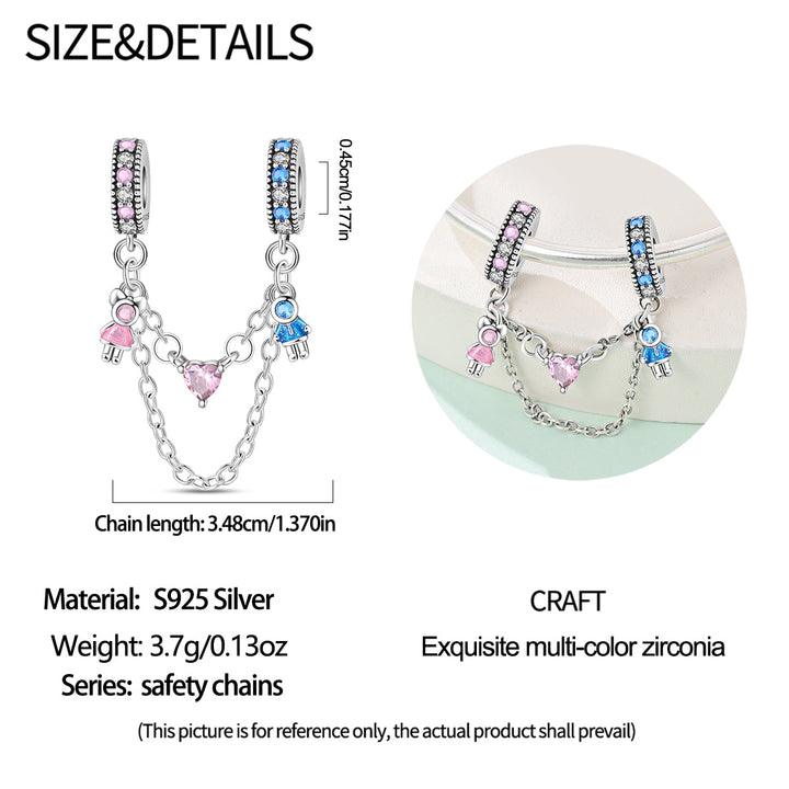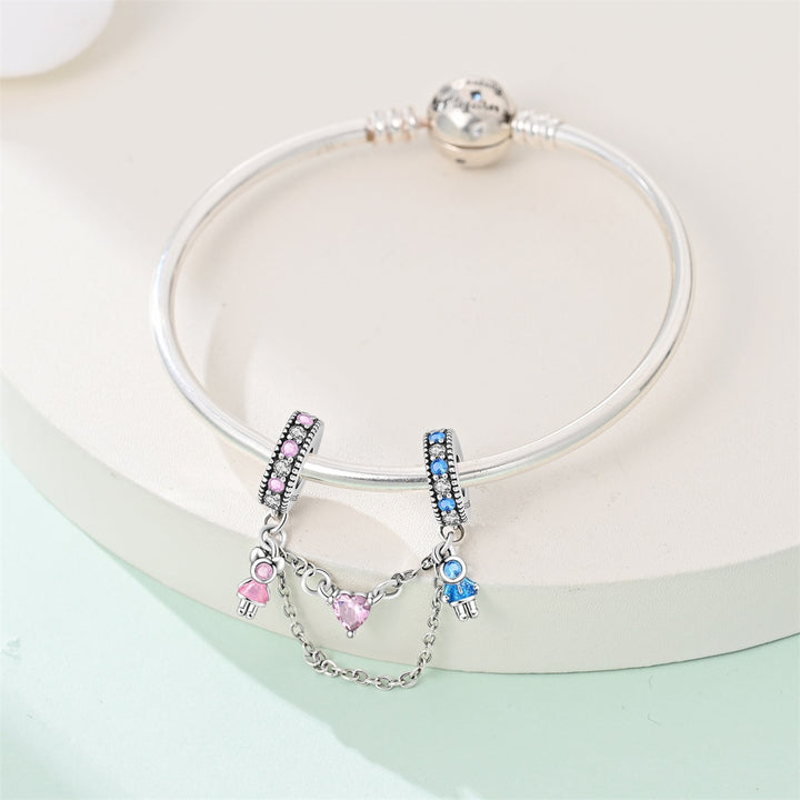 La Cadena de Seguridad Boy & Girl es una pieza tierna y significativa que celebra el amor familiar, la maternidad o el vínculo especial entre hermanos. Con encantadores detalles de un niño y una niña, esta cadena aporta un toque de dulzura y simbolismo a tu pulsera, mientras cumple su función principal: mantener tus charms seguros ante cualquier apertura accidental.