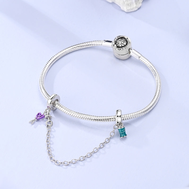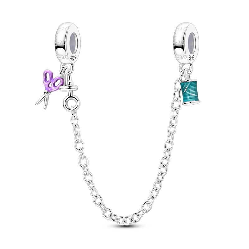 Los clips son accesorios diseñados para distribuir equitativamente los charms en una pulsera, manteniendo un equilibrio visual y funcional. Por su parte, las cadenas de seguridad evitan que los charms se caigan si la pulsera llega a abrirse accidentalmente.
