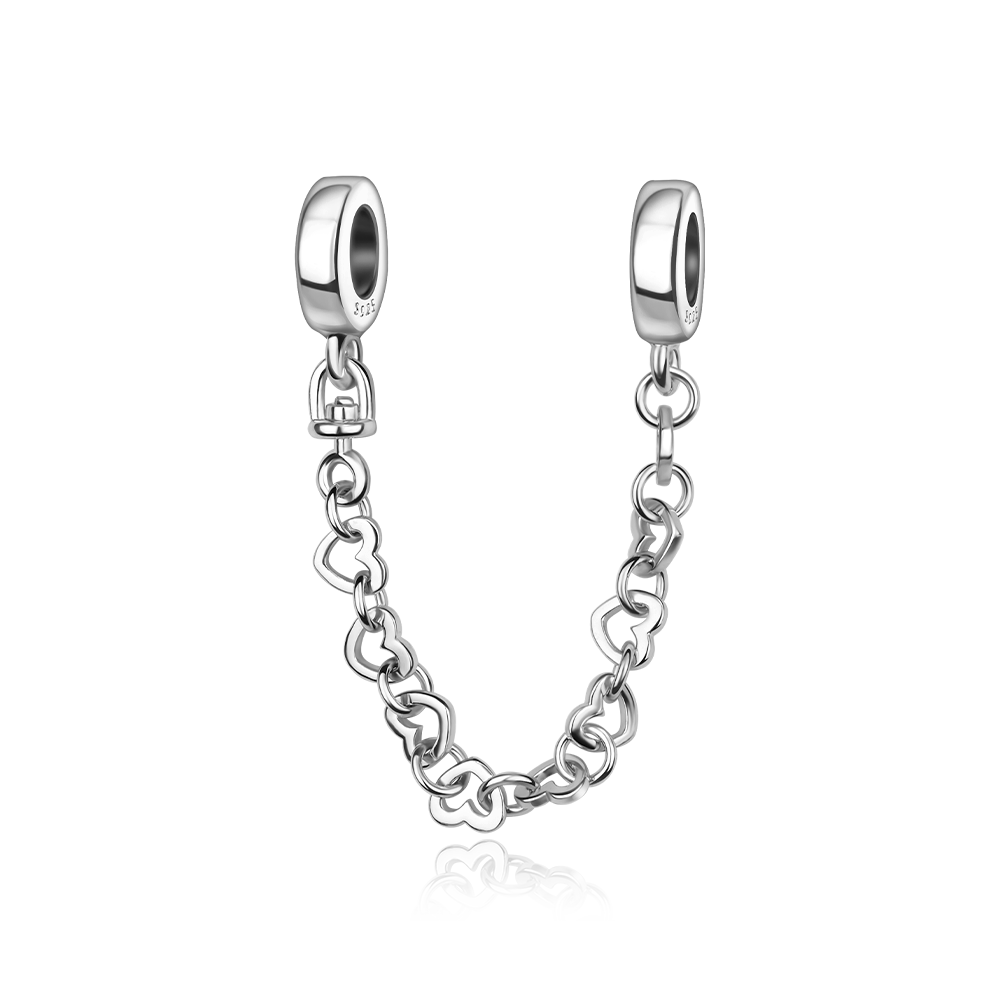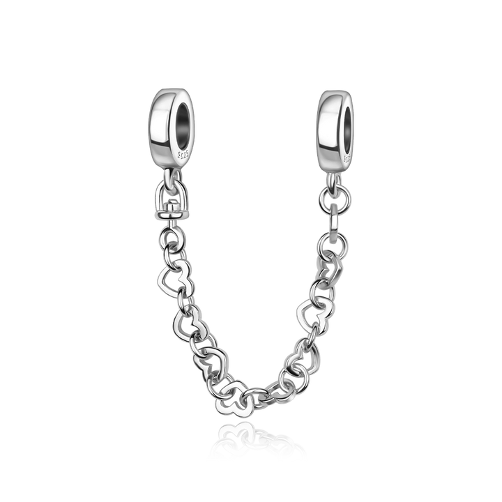Cadena de Seguridad De Corazones Plata