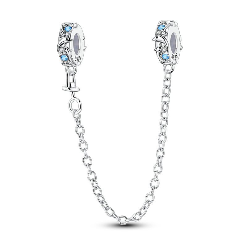 La Cadena de Seguridad Delfines es una joya inspirada en la belleza y libertad de estos inteligentes y amigables mamíferos marinos. Los delfines, conocidos por simbolizar armonía, protección y alegría, añaden un toque especial a tu pulsera mientras ofrecen la seguridad de mantener tus charms protegidos. Con un diseño elegante y lleno de energía positiva, esta cadena es perfecta para quienes sienten una conexión con el mar y la naturaleza.