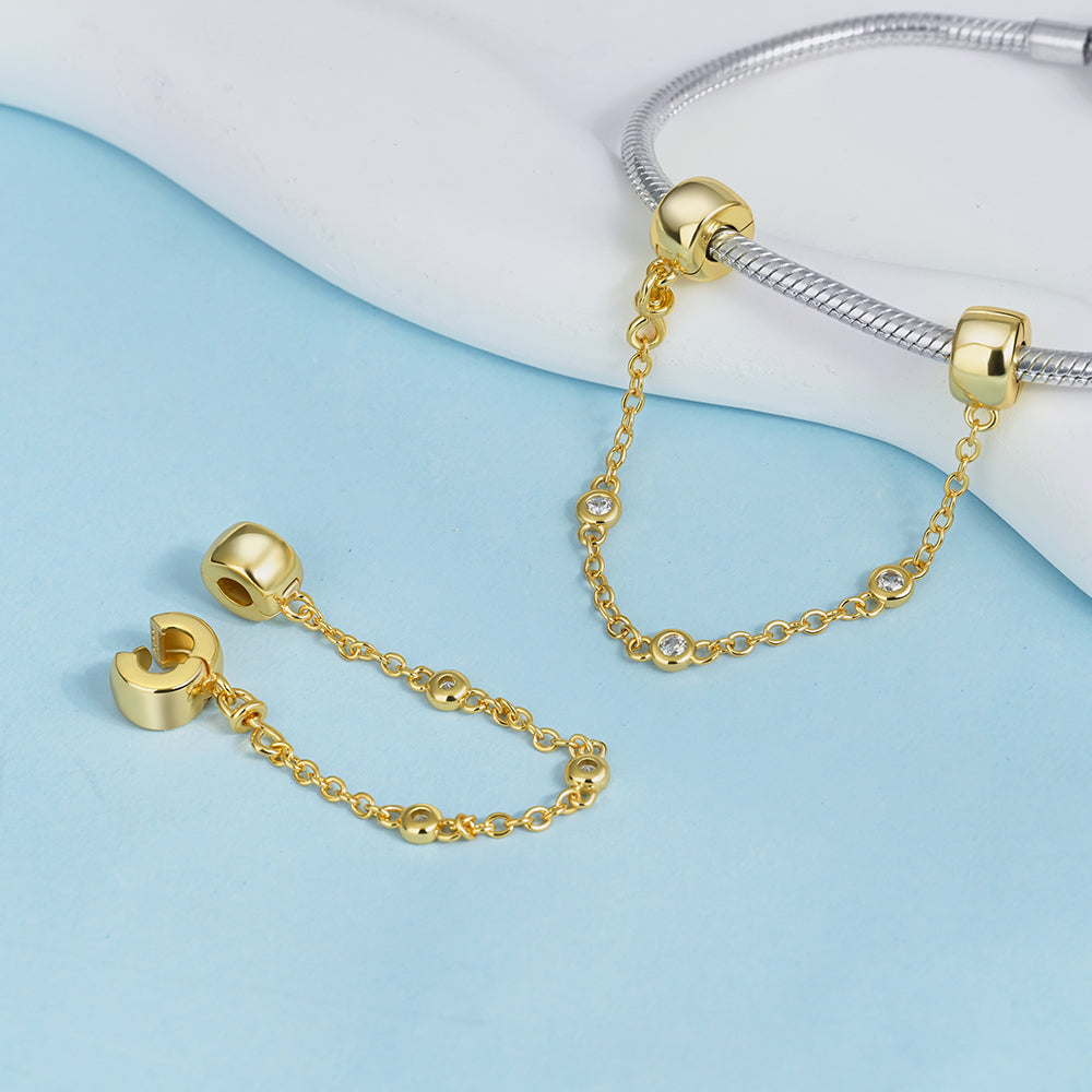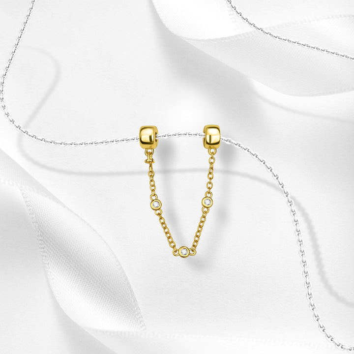 Una cadena elegante y funcional que protege tus charms con estilo 💖✨. Perfecta para mantener tus pulseras seguras y añadir un toque de brillo y sofisticación a tu accesorio 🎀💫. Ideal para quienes buscan combinar seguridad, elegancia y detalles dorados en un solo accesorio 🌸🕊️💛.
