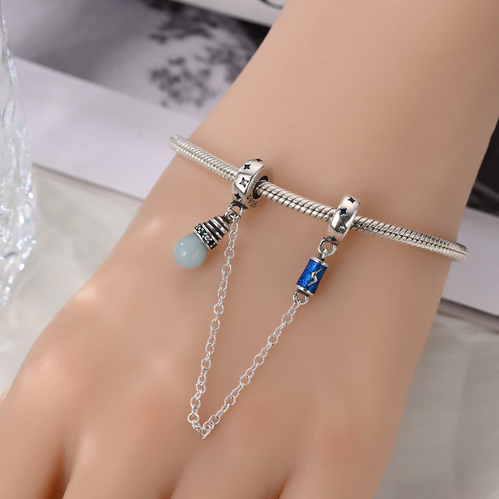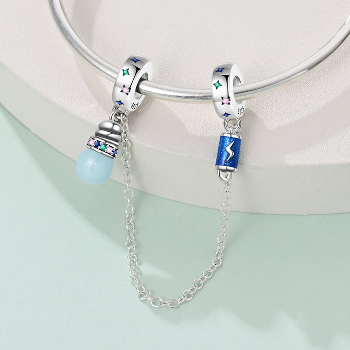 Los clips son accesorios diseñados para distribuir equitativamente los charms en una pulsera, manteniendo un equilibrio visual y funcional. Por su parte, las cadenas de seguridad evitan que los charms se caigan si la pulsera llega a abrirse accidentalmente.