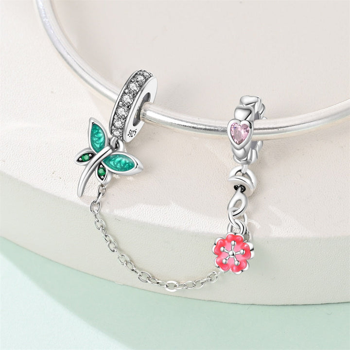 La Cadena de Seguridad Flor & Libélula es una pieza delicada que une la protección con la belleza de la naturaleza. Decorada con una encantadora flor y una elegante libélula, esta cadena simboliza renovación, crecimiento y libertad. Su diseño no solo mantiene seguros tus charms en caso de apertura accidental del broche, sino que también añade un detalle poético y armonioso a tu pulsera.
