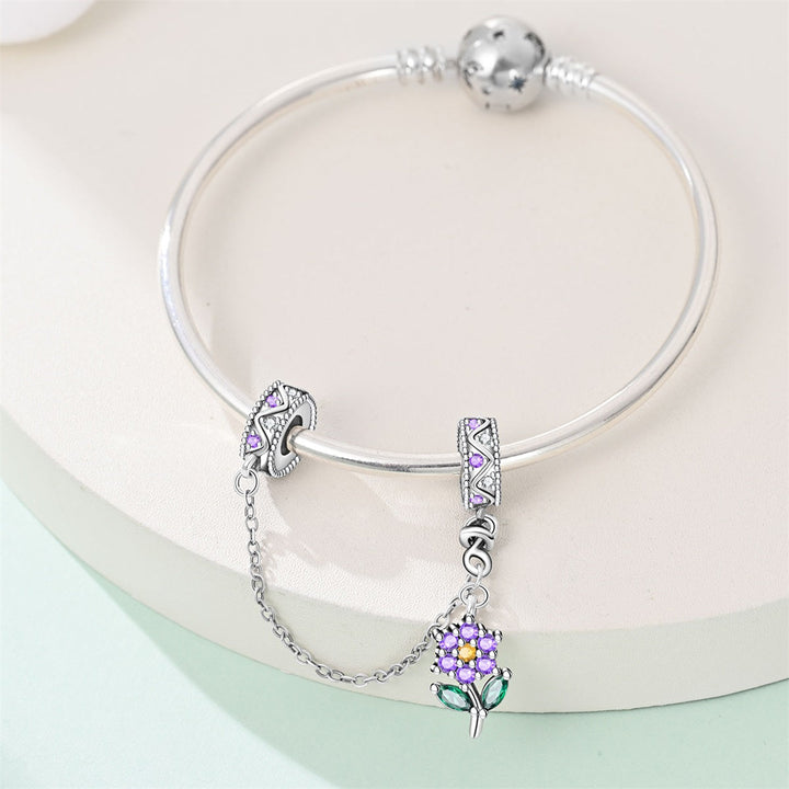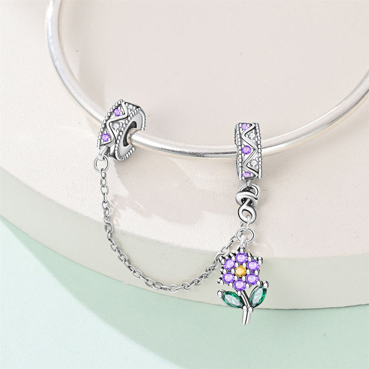 La Cadena de Seguridad Flor Morada combina elegancia y funcionalidad con un toque de encanto natural. Su delicado diseño floral en tono morado simboliza la calma, la creatividad y la espiritualidad, convirtiéndola en una pieza ideal para quienes valoran la belleza de los pequeños detalles. Además de asegurar tu pulsera ante aperturas accidentales, esta cadena aporta un acento sofisticado y femenino a cualquier conjunto de charms.