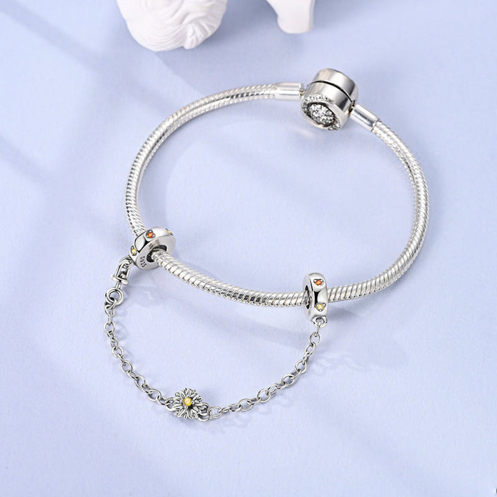 🌸✨ La Cadena de Seguridad Flor Plateada combina funcionalidad y elegancia en una sola pieza. Su diseño inspirado en delicadas flores plateadas simboliza pureza, tranquilidad y belleza natural. Es perfecta para mantener tus charms seguros con un toque sutil y femenino, añadiendo armonía y estilo a tu pulsera favorita.