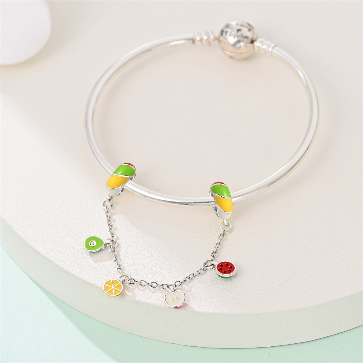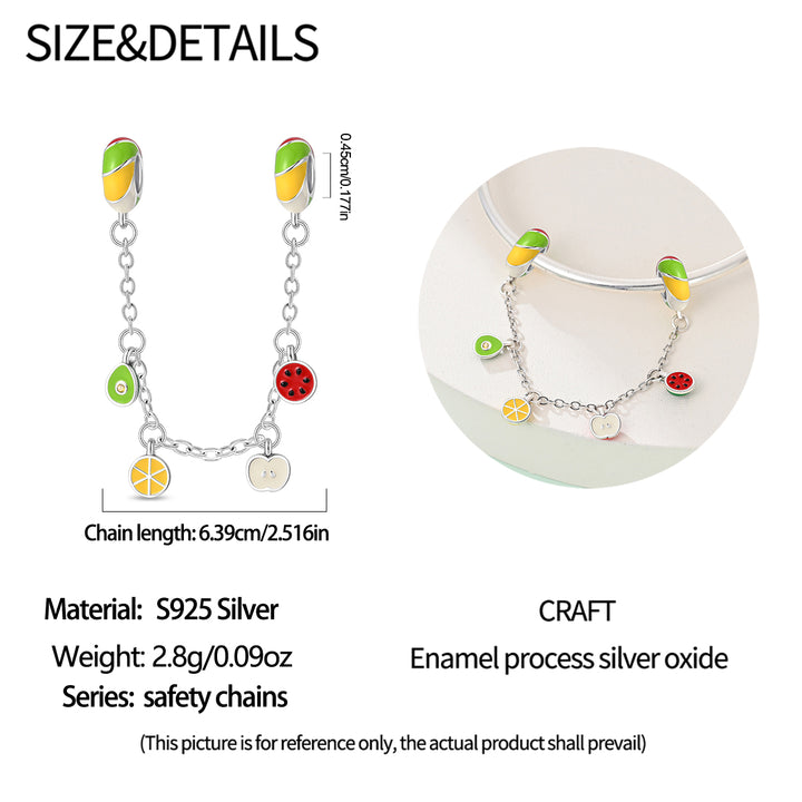 La Cadena de Seguridad Fruta es una pieza fresca, divertida y llena de color que evoca la alegría del verano y la vitalidad de la naturaleza. Con encantadores detalles de frutas, esta cadena no solo protege tu pulsera y charms en caso de apertura accidental, sino que también añade un toque juguetón y lleno de vida a tu colección de joyería.