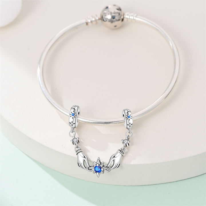 La Cadena de Seguridad Manos & Estrella Azul no solo asegura tus charms, sino que también refleja un mensaje de esperanza y protección en tu vida cotidiana.