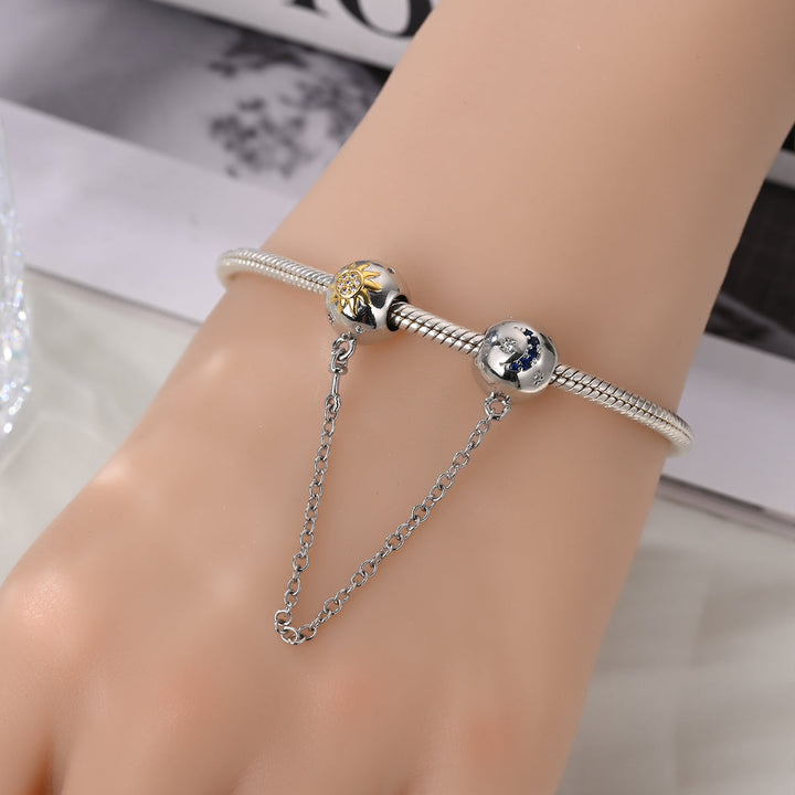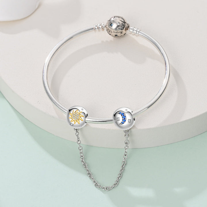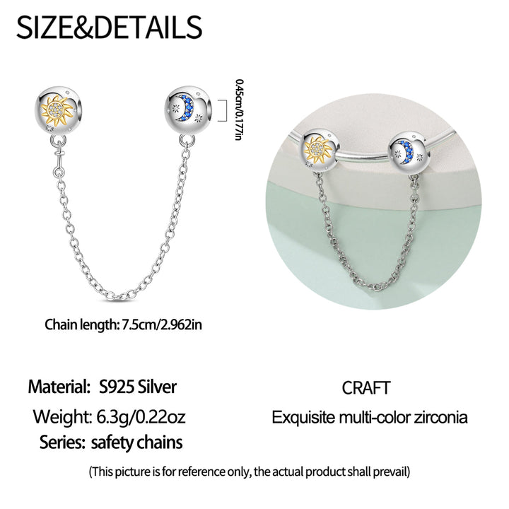 La cadena de seguridad Noche & Día es un accesorio que simboliza el contraste y equilibrio entre el día y la noche. Esta cadena puede tener elementos decorativos que representan ambos conceptos, como el sol y la luna, estrellas y nubes, o incluso colores que se asocian con la luz del día y la oscuridad de la noche. Este tipo de cadena de seguridad puede ser tanto un artículo decorativo como funcional, dependiendo de su diseño.