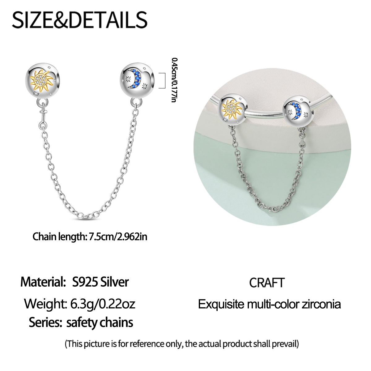 Además, si se utiliza en el contexto de seguridad, podría tener una aplicación práctica como una cadena diseñada para proporcionar seguridad en situaciones de uso nocturno y diurno, adaptándose a diferentes ambientes y condiciones de luz. Puede ser especialmente útil en dispositivos de protección o en accesorios personalizados con temas relacionados al día y la noche.