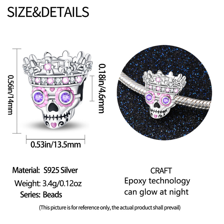 El Charm Calavera con Corona Fluorescente es una pieza espectacular que combina la elegancia con un toque audaz. Este encantador charm presenta una calavera adornada con una impresionante corona, todo ello en un acabado fluorescente que brilla intensamente, ideal para quienes buscan destacar y añadir un toque de originalidad a su colección. Fabricado con materiales de alta calidad, cada detalle está meticulosamente elaborado, capturando la esencia de la cultura del Día de los Muertos con un giro moderno y divertido.