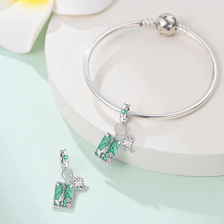 Este charm está inspirado en el As de Bastos del tarot, símbolo de nuevos comienzos, energía creativa y pasión encendida. Representa la chispa inicial de una idea, proyecto o etapa llena de entusiasmo y determinación. Ideal para quienes se encuentran en un momento de impulso y crecimiento personal o profesional. ¡Un recordatorio de que todo gran fuego empieza con una chispa!