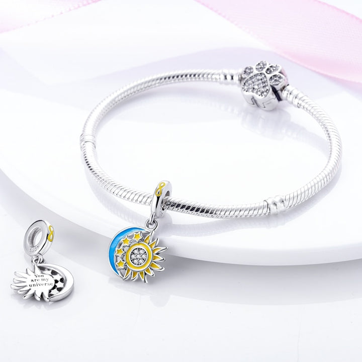 Fabricado con materiales de alta calidad, este encanto garantiza durabilidad y resistencia, mientras que su diseño exquisito y detallado lo convierte en una pieza única y elegante. Úsalo en tu pulsera o collar favorito para añadir un toque de magia celestial a tu estilo diario, y deja que la belleza del universo te acompañe a donde quiera que vayas.