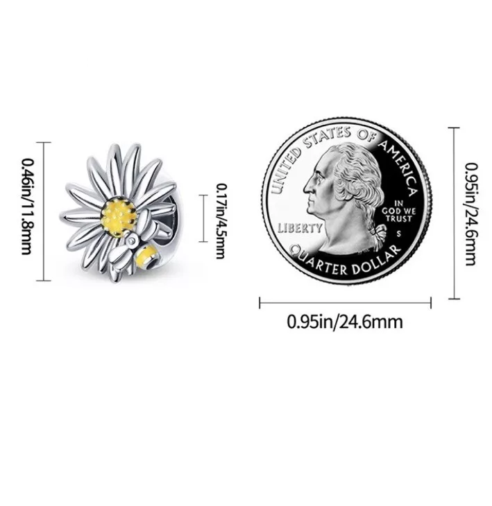 Con su diseño plateado brillante, este encanto evoca la pureza y la inocencia asociadas con la margarita. La forma delicada de los pétalos y el centro brillante dan vida a la flor de una manera encantadora y elegante.