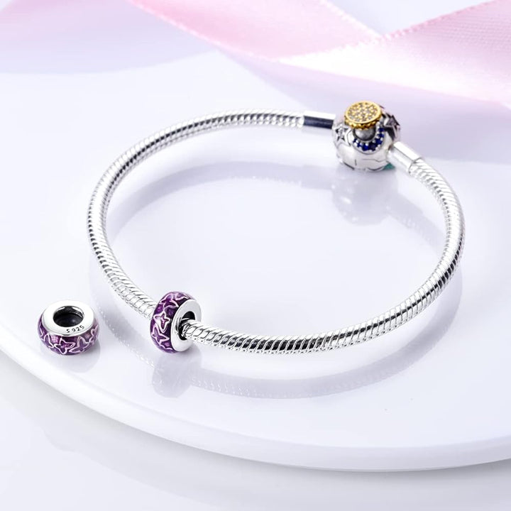 Cada detalle de este encantador abalorio ha sido meticulosamente elaborado para reflejar la gracia y la elegancia de la naturaleza. Las delicadas alas de la mariposa están finamente detalladas, y su tono morado agrega un toque de misterio y sofisticación.