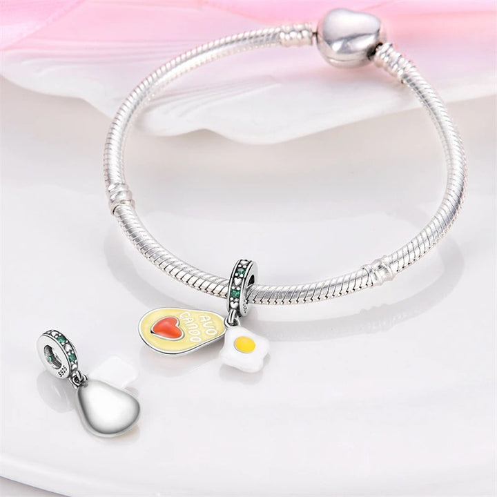 Nuestros charms, pulseras, anillos y aretes están elaborados en acero inoxidable de alta calidad, con un laminado de plata premium.