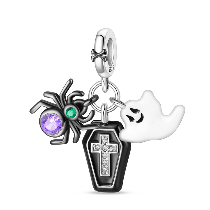 Perfecto para personalizar pulseras, collares o llaveros, este charm es ideal para aquellos que quieren añadir un toque festivo y un poco de diversión a su colección. Su diseño único lo convierte en un regalo perfecto para amigos y familiares que disfrutan de la temporada de Halloween y su ambiente encantadoramente espeluznante. ¡Deja que el Charm Araña, Tumba, Fantasma ilumine tus noches de octubre y añada un toque de misterio y alegría a cada celebración!