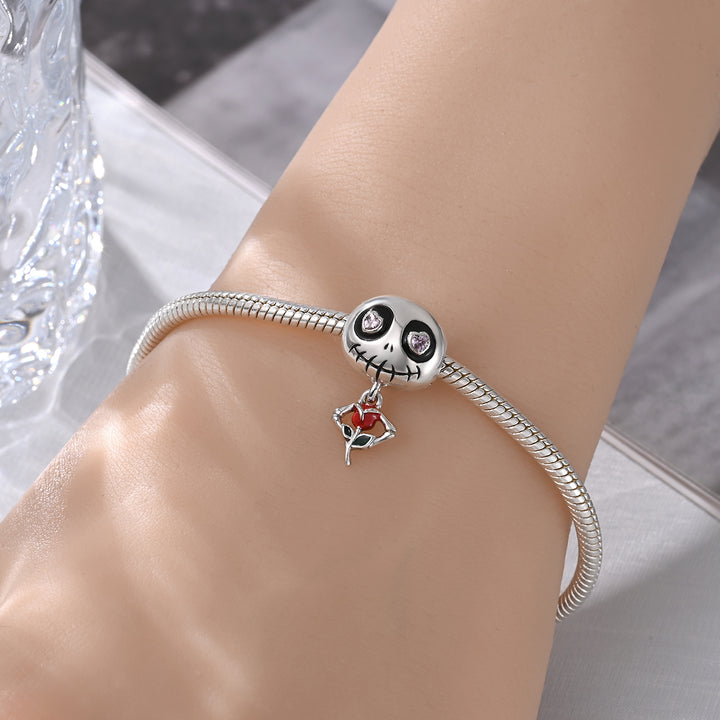 Ideal para personalizar pulseras, collares o llaveros, el Charm Calavera con Rosa es perfecto para aquellos que aprecian la estética gótica y los elementos que evocan la celebración de la vida en su totalidad. Su diseño distintivo lo convierte en un regalo ideal para amantes de la cultura del Día de los Muertos, la moda alternativa o simplemente para quienes buscan un toque original en su colección. ¡Deja que el Charm Calavera con Rosa te inspire y añada un toque de encanto oscuro a tu estilo!
