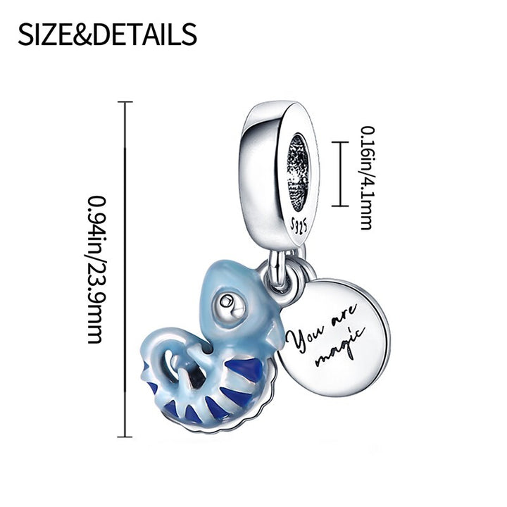 El charm está cuidadosamente diseñado para resaltar los elementos distintivos de un camaleón, incluyendo su cuerpo esbelto, su cola enrollada y su capacidad de cambiar de color. Cada aspecto ha sido meticulosamente elaborado para reflejar la singularidad y la gracia de este increíble reptil, haciendo de este charm una pieza destacada en cualquier colección de accesorios.