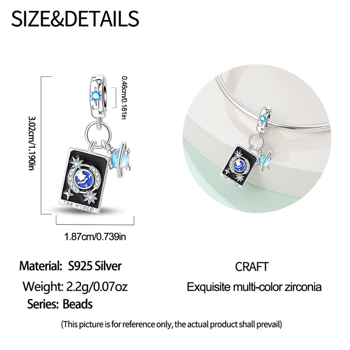 Este hermoso charm está inspirado en La Carta Del Mundo del tarot, símbolo de plenitud, realización y cierre de ciclos. Representa el logro de metas, la armonía con el universo y el comienzo de nuevas aventuras con sabiduría. Es perfecto para quienes celebran sus logros, su evolución personal o un nuevo comienzo lleno de propósito. Un amuleto que irradia balance, conexión y éxito.