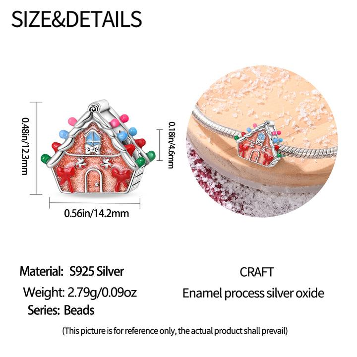 • El charm está diseñado como una casa de jengibre en miniatura, con una estructura que recuerda a las típicas casitas decoradas con glaseado y dulces de colores.