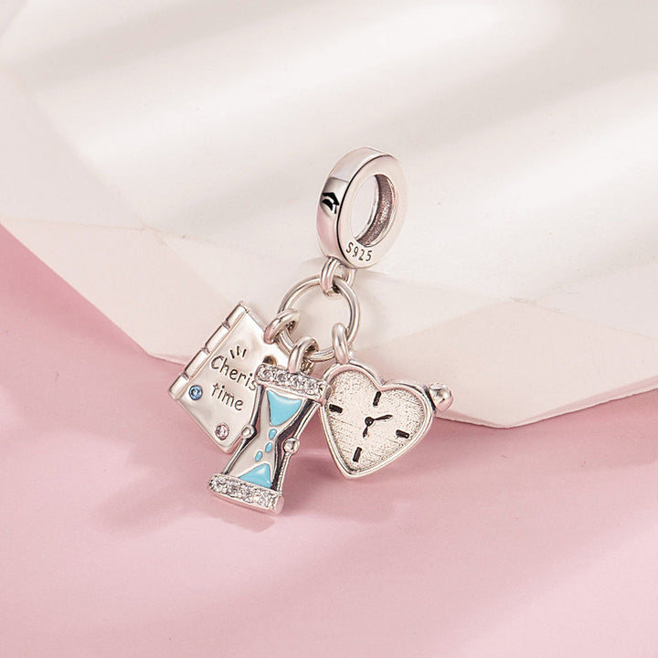 El charm "Cherish Time" es un dije elegante y significativo que representa la importancia de valorar cada momento. Puede estar diseñado con detalles como un reloj, un reloj de arena o símbolos de infinito, recordando que el tiempo es un regalo preciado. Fabricado en materiales como plata, oro o acero inoxidable, este charm es perfecto para quienes desean llevar consigo un recordatorio de atesorar cada instante con sus seres queridos.