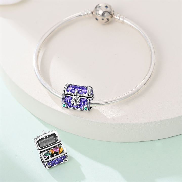Perfecto para personalizar pulseras, collares o llaveros, el Charm Cofre Morado es más que un accesorio: es una invitación a descubrir tu propio tesoro interior. Su diseño detallado y su color vibrante lo convierten en una pieza llamativa y significativa.
