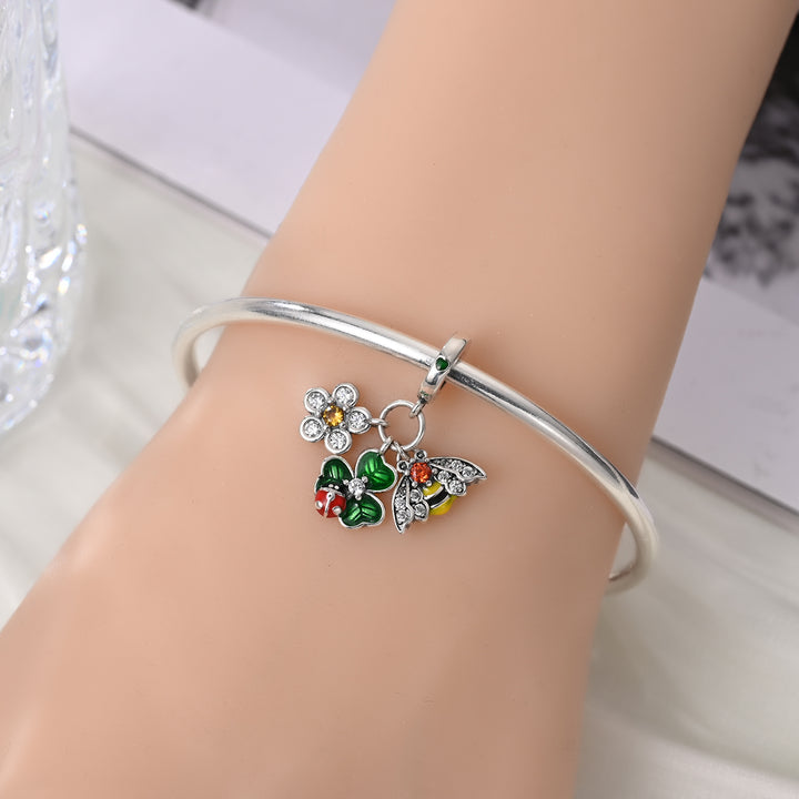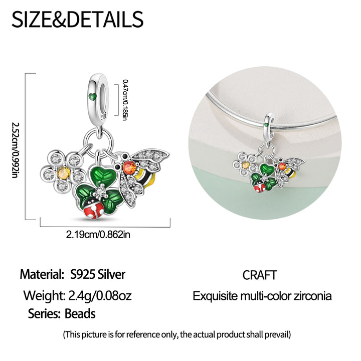 El Charm Colgante Abeja, Flor & Trébol es un diseño lleno de simbolismo y alegría. Este encantador colgante combina una abejita detallada, una flor delicada y un trébol de la suerte, representando trabajo, naturaleza y buena fortuna. Es perfecto para quienes aman la energía positiva y los toques naturales en sus accesorios. Ideal para agregar un estilo fresco y significativo a tu pulsera. 🌼🍀🐝