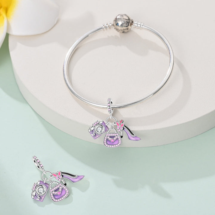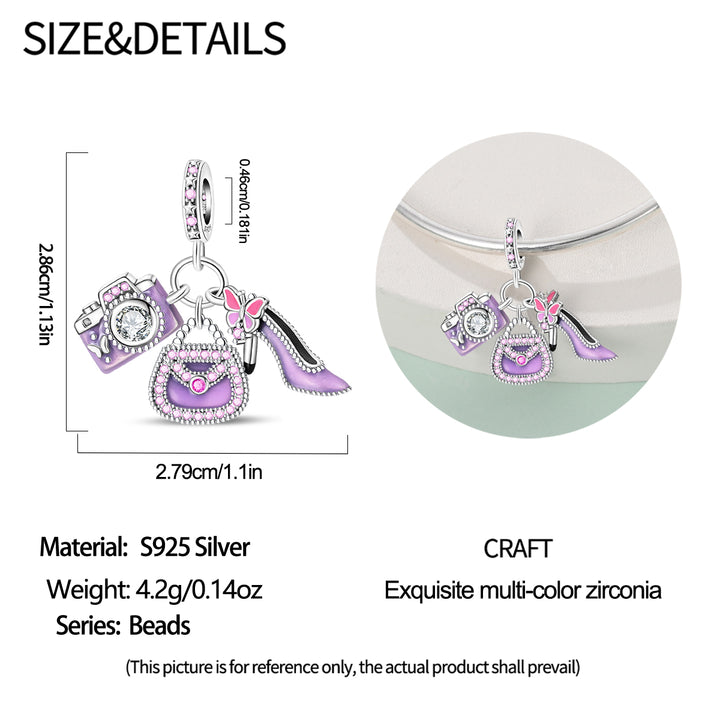 El Charm Colgante Zapatilla, Bolso & Camara es un encantador diseño que combina tres elementos de moda: una elegante zapatilla de tacón, un bolso sofisticado y un camarón estilizado. Este charm es ideal para quienes aman la moda y los accesorios únicos, añadiendo un toque de estilo y elegancia a cualquier pulsera o cadena. La zapatilla y el bolso destacan por su detalle, mientras que el camarón le da un giro divertido y original, convirtiéndolo en una pieza perfecta para quienes disfrutan de lo chic y lo creativo. ¡Una mezcla perfecta de glamour y diversión!