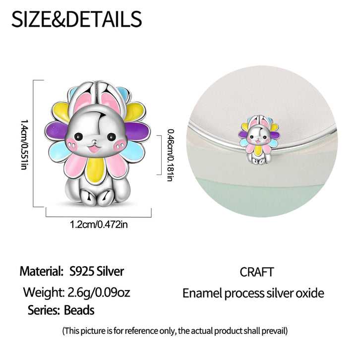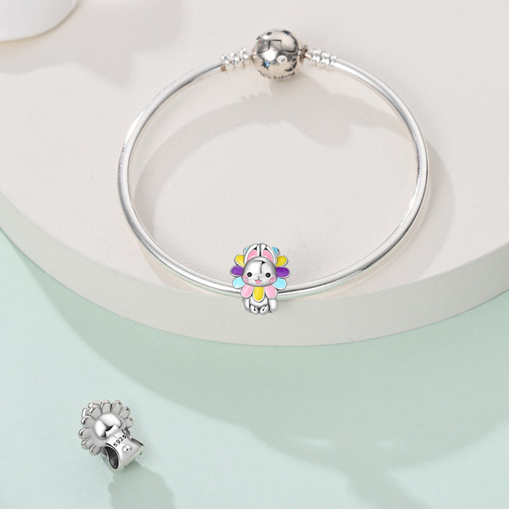 El Charm Conejito Disfrazado de Flor es una pieza encantadora que fusiona ternura y fantasía. Representa a un dulce conejito con un disfraz de pétalos de flor, creando un diseño adorable y lleno de color. Es perfecto para quienes aman los detalles únicos, la naturaleza y los animalitos, añadiendo un toque juguetón y primaveral a cualquier pulsera. 🐰🌸✨