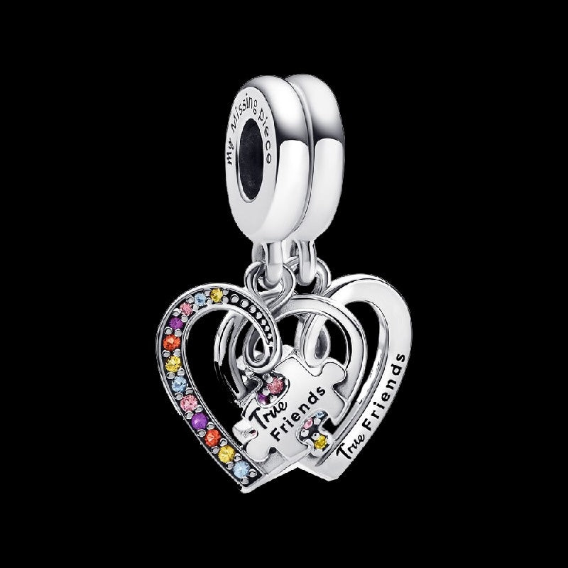 El charm está cuidadosamente diseñado para resaltar los elementos distintivos de un corazón partido, con cada mitad del corazón elaborada de manera meticulosa para reflejar la importancia de la unión. Cada mitad puede llevar inscripciones que simbolicen la amistad, como "Best" y "Friends" grabadas en cada lado, añadiendo un toque personalizado y emotivo.