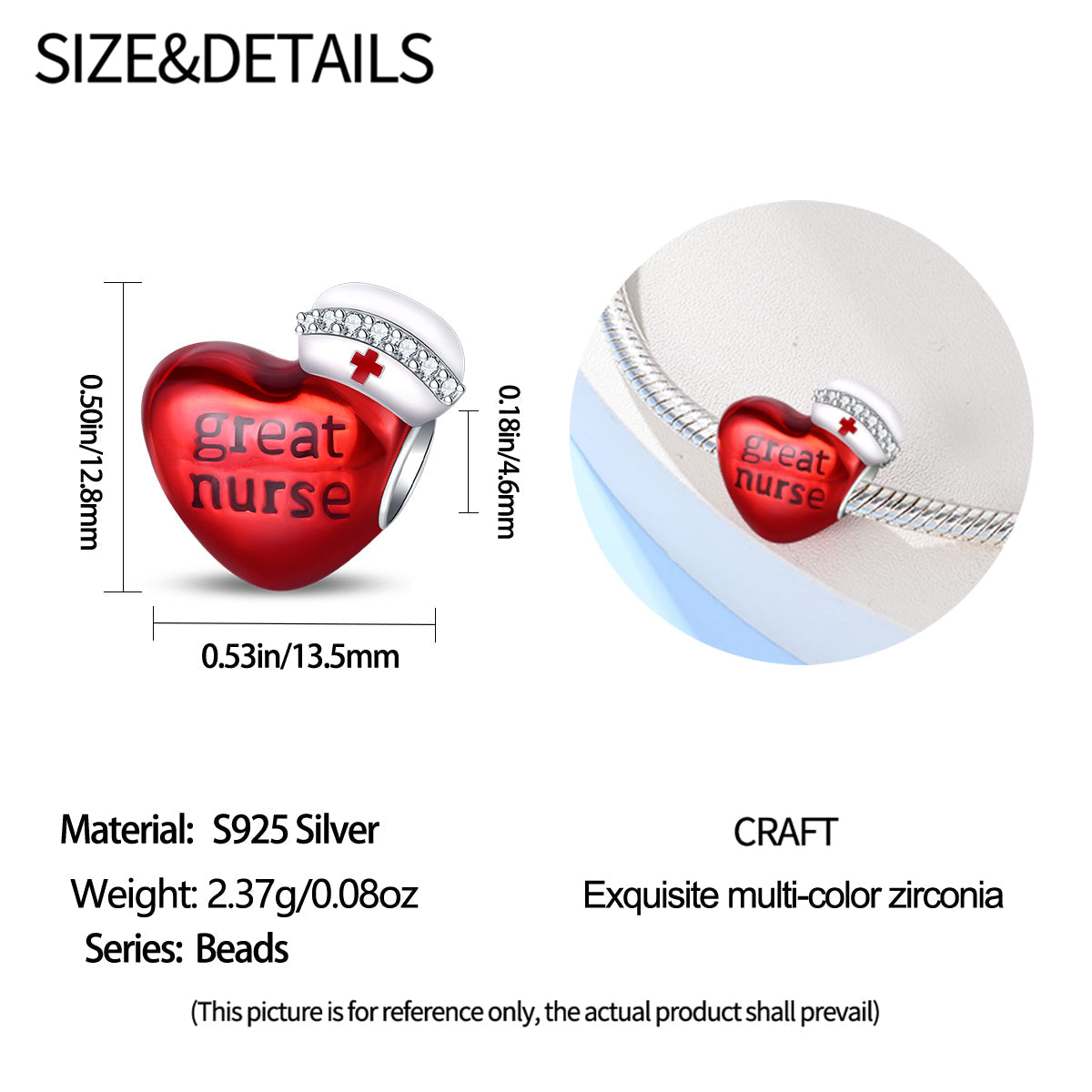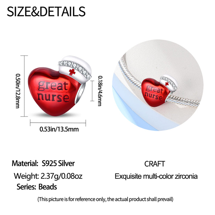 El Charm Corazón "Great Nurse" es un hermoso recordatorio de la importancia de la enfermería, celebrando el valor, la bondad y la entrega de aquellos que están en primera línea de atención médica. Es un detalle lleno de cariño y gratitud, ideal para alguien que dedica su vida a cuidar de los demás.