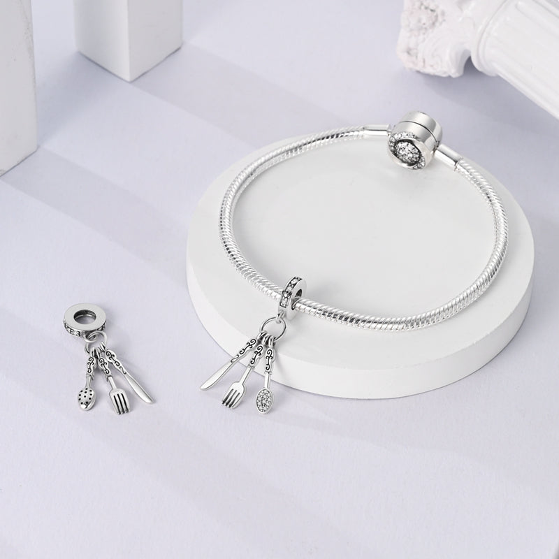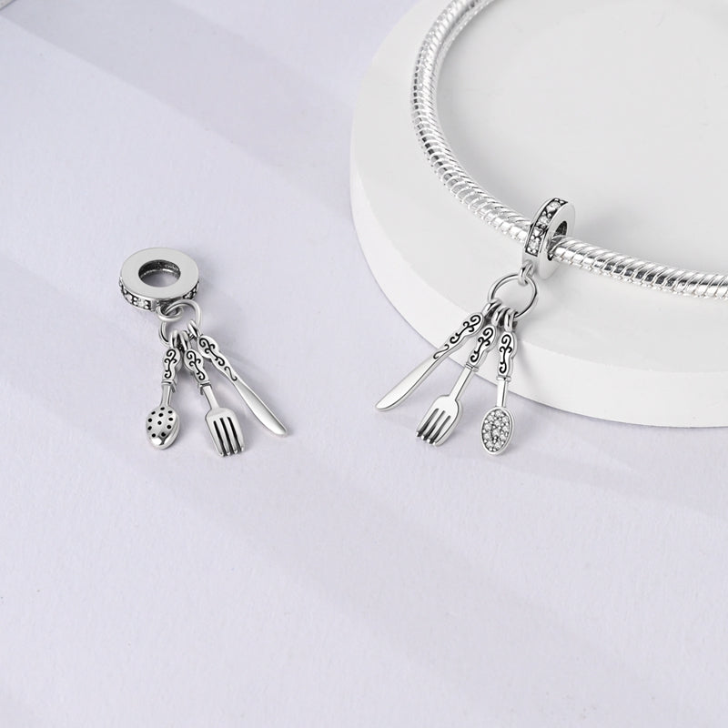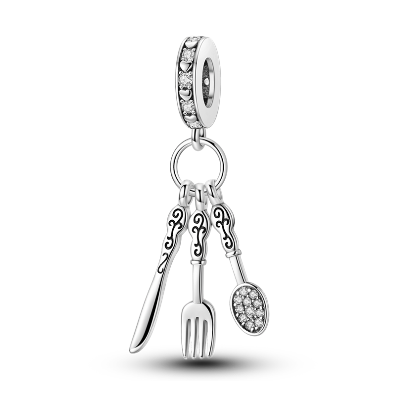 El Charm Cubiertos es una adorable representación de los utensilios esenciales en la mesa, perfecto para los amantes de la cocina y los momentos compartidos en familia. Este diseño único captura la esencia de la gastronomía con detalle y elegancia, añadiendo un toque personal y significativo a tu colección de charms.