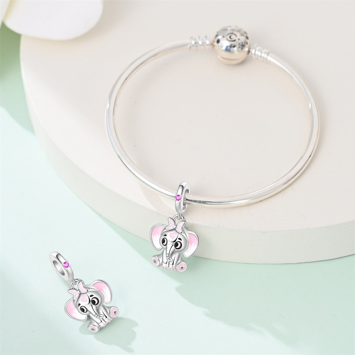 El Charm Elefante Rosa es una pieza elegante y simbólica que captura la majestuosidad y sabiduría de uno de los animales más grandes y respetados del reino animal, con un toque dulce y suave gracias a su tonalidad rosa. Este charm representa fuerza, protección y buena suerte, mientras que su color rosa le otorga un aire de ternura y amor.