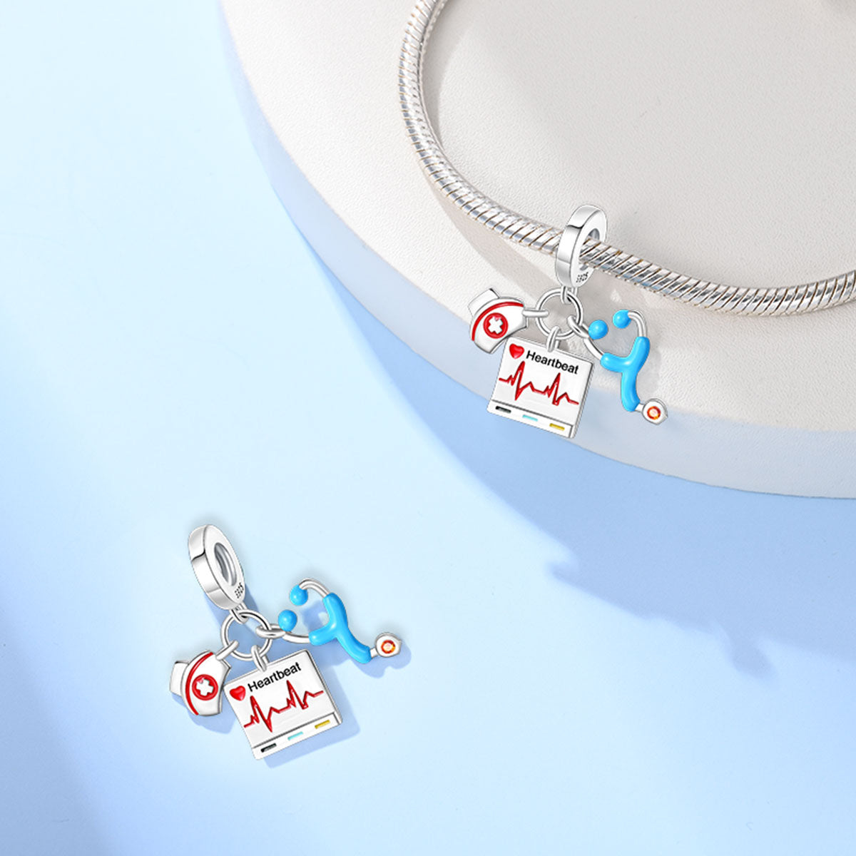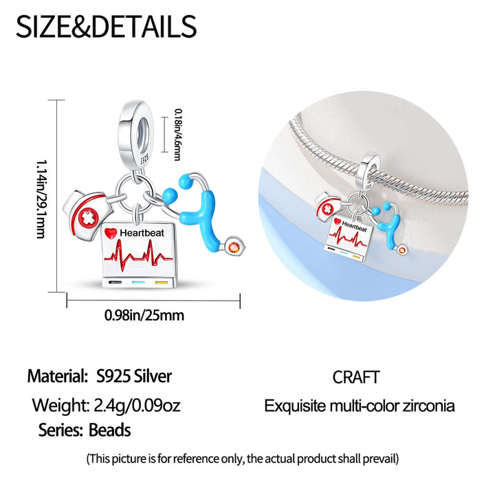 3. Materiales: Este charm puede estar hecho de metal (como acero inoxidable, plata esterlina o bronce) con detalles en esmalte de colores vivos para hacer resaltar ciertos elementos, como la cruz roja o los utensilios médicos. La combinación de materiales garantiza un charm de alta calidad y durabilidad, ideal para el uso diario.