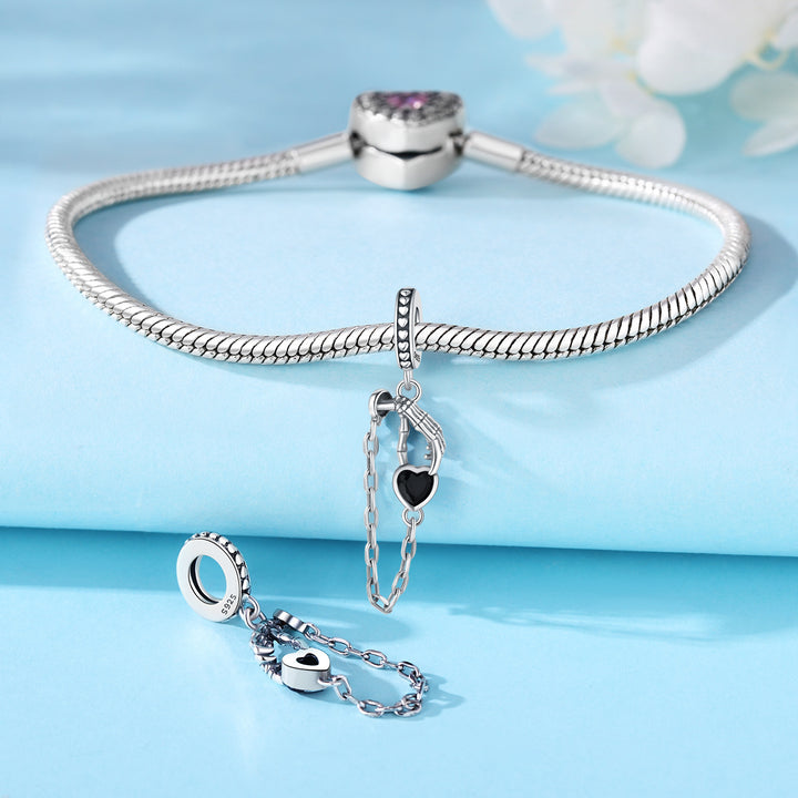 Los clips son accesorios diseñados para distribuir equitativamente los charms en una pulsera, manteniendo un equilibrio visual y funcional. Por su parte, las cadenas de seguridad evitan que los charms se caigan si la pulsera llega a abrirse accidentalmente.