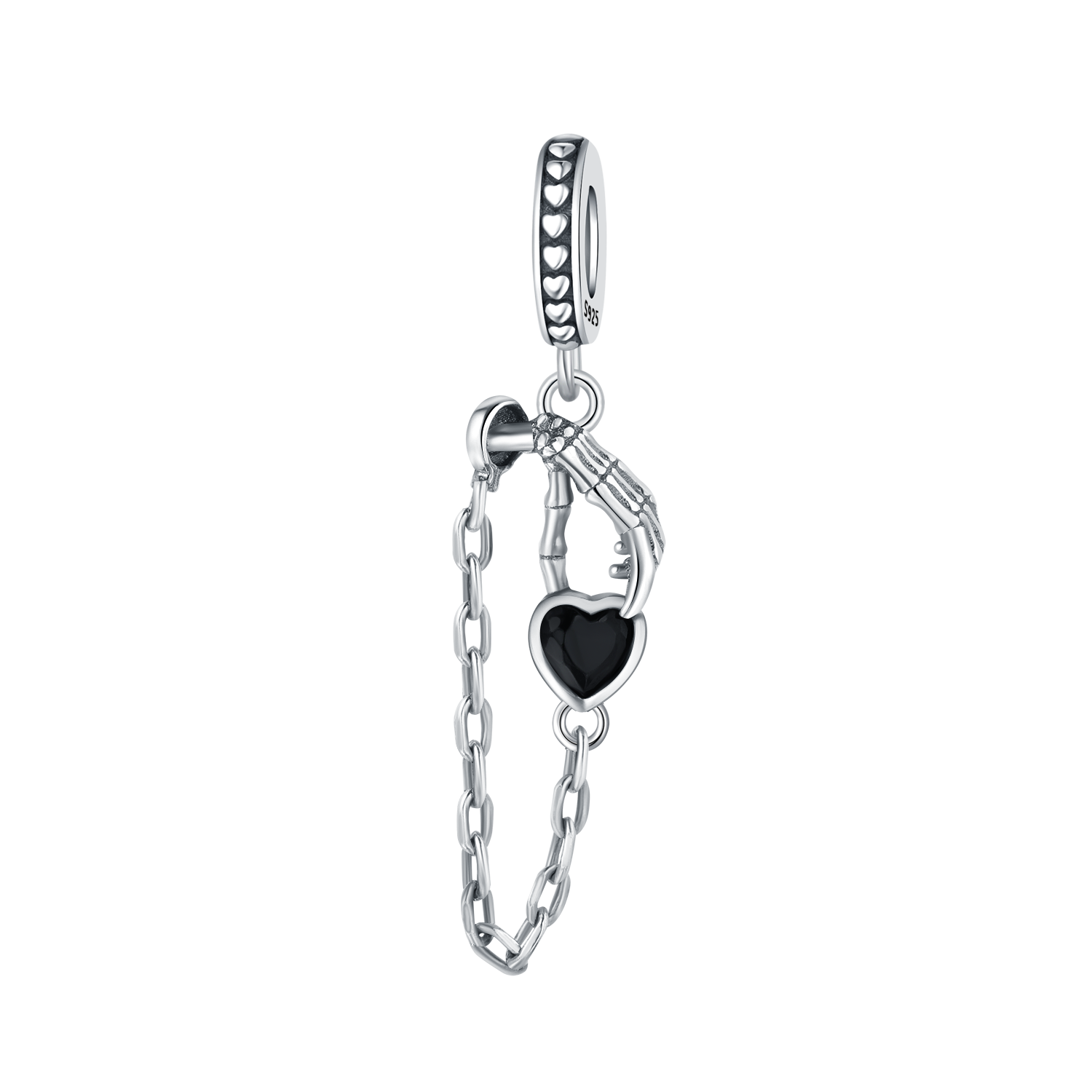Este charm ofrece una representación de la dualidad entre la vida y la muerte, el amor y la mortalidad, con un esqueleto que sostiene o está decorado con un corazón. Dependiendo del diseño, el corazón puede ser de un color brillante como rojo o rosa, lo que aporta un contraste llamativo con los detalles de hueso del esqueleto. La combinación de estos dos elementos crea un contraste visual fascinante que tiene un toque gótico, pero también puede ser tierno o romántico, dependiendo de cómo se perciba.
