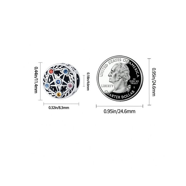 El diseño del charm presenta meticulosamente esculpida una estrella con los siete colores representativos de los chakras, los centros de energía del cuerpo según la tradición hindú. Cada color simboliza un aspecto diferente de la vida y la salud, desde la energía y la creatividad hasta la paz y la espiritualidad.
