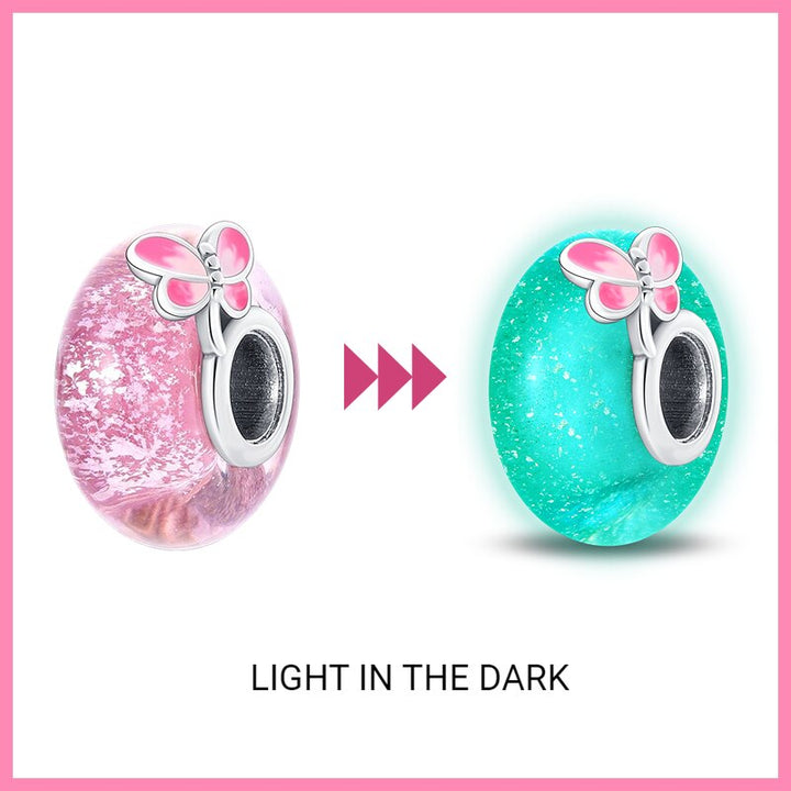 El diseño del charm presenta una mariposa meticulosamente esculpida, con sus alas extendidas y detalles intrincados. Durante el día, esta pieza puede parecer una joya exquisita con un toque de fantasía, pero en la oscuridad, cobra vida con un resplandor suave y mágico. Cada vez que se ilumina, evoca la belleza y la serenidad del mundo natural.