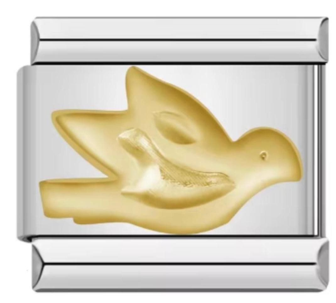 Este encantador charm presenta una ave dorada, simbolizando libertad, paz y esperanza. Con su acabado dorado brillante y diseño elegante, es perfecto para quienes buscan un toque lleno de significado y belleza en su pulsera.
