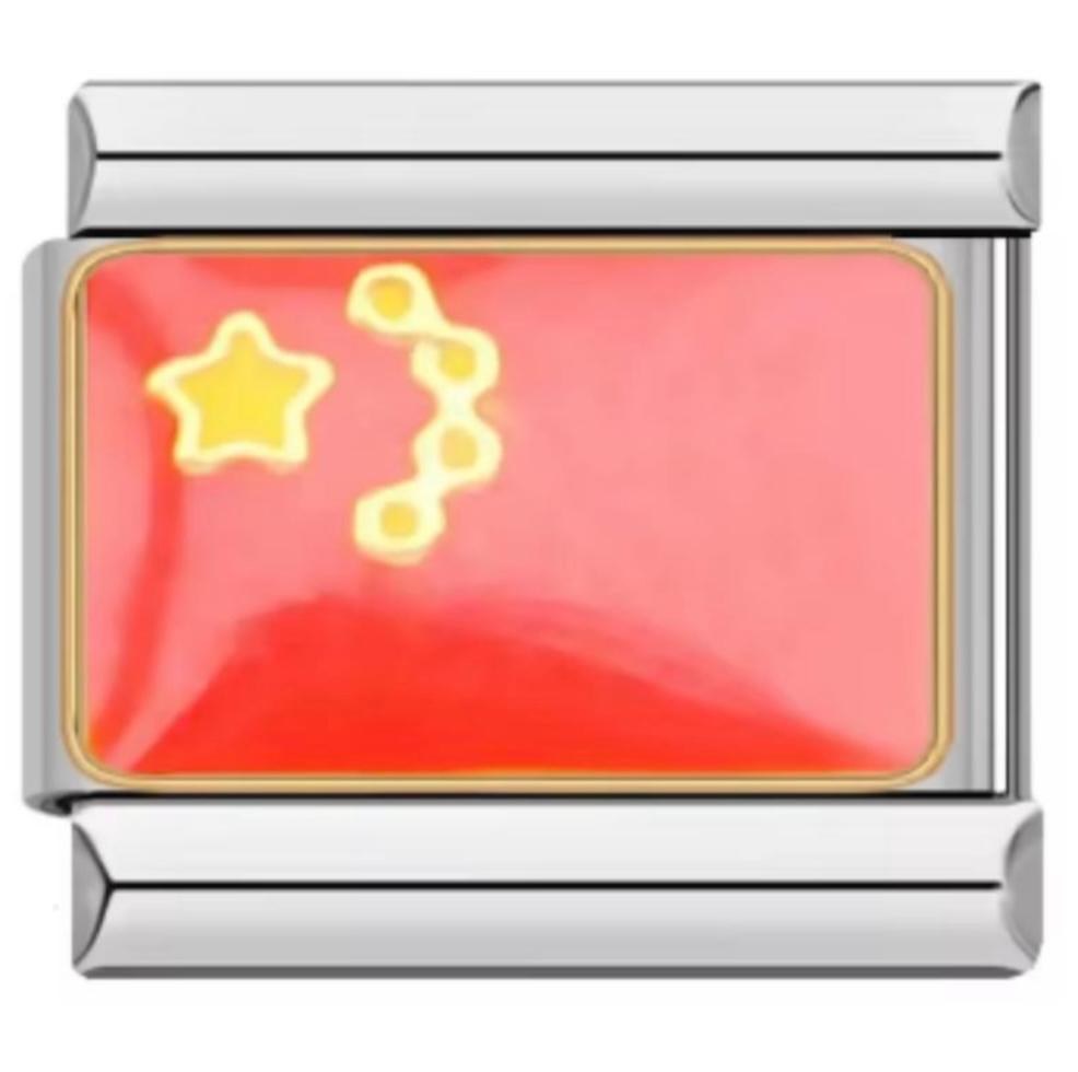 Este charm presenta la bandera de China, simbolizando el orgullo nacional, la historia y la cultura de este vasto país. Con sus colores rojo y amarillo y las estrellas representando la unidad del pueblo chino, es perfecto para quienes desean un toque patriótico y lleno de significado en su pulsera, celebrando su conexión con China.