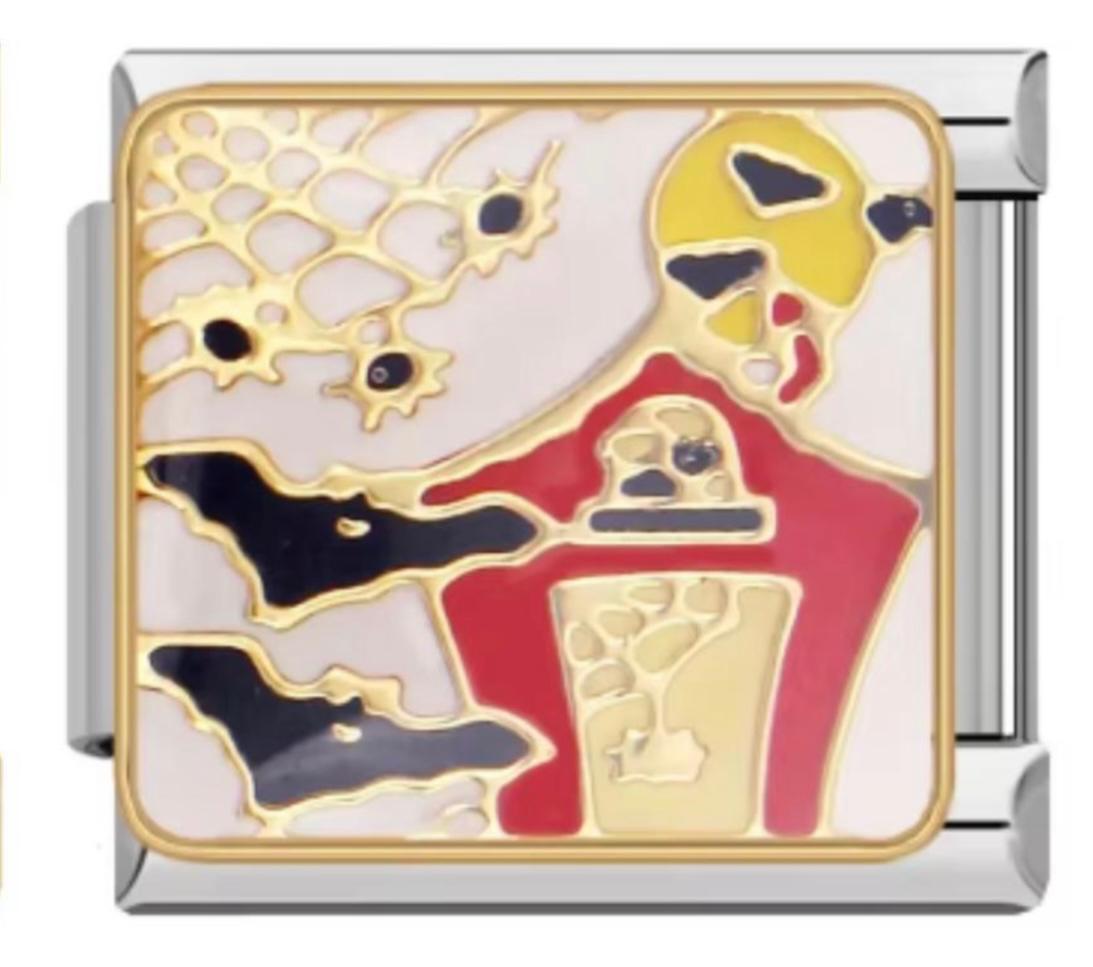 Este charm se conecta a la pulsera por un sistema de eslabones elásticos o deslizantes, permitiendo personalizar completamente tu accesorio.