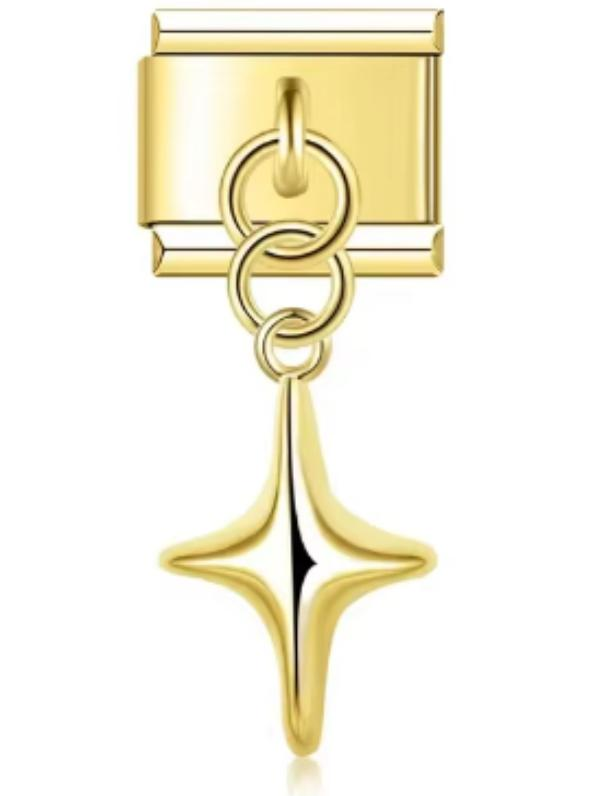 Este charm en forma de estrella dorada simboliza el brillo, el éxito y la magia. Con su acabado dorado brillante, es perfecto para quienes buscan un toque elegante y lleno de luz en su pulsera. ✨🌟