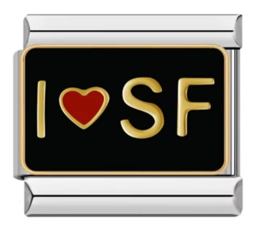 El Charm Italiano I Love SF es una pieza encantadora que rinde homenaje a la vibrante ciudad de San Francisco. Con la frase “I Love SF”, este charm es perfecto para quienes han visitado, vivido o sueñan con explorar esta icónica ciudad costera llena de historia, cultura y paisajes inolvidables.