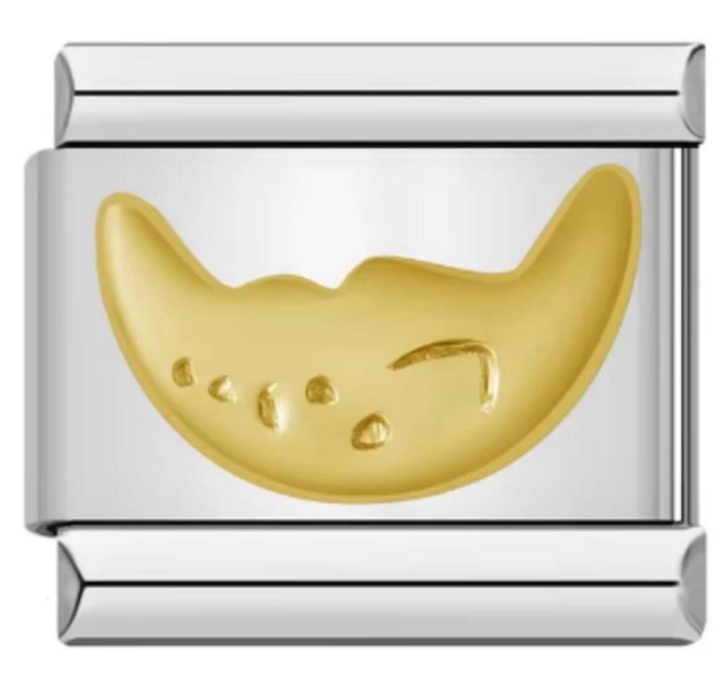 Este encantador charm presenta una luna dorada, simbolizando misterio, sueños y serenidad. Con su acabado dorado brillante y su diseño elegante, es perfecto para quienes buscan un toque celestial y lleno de significado en su pulsera.