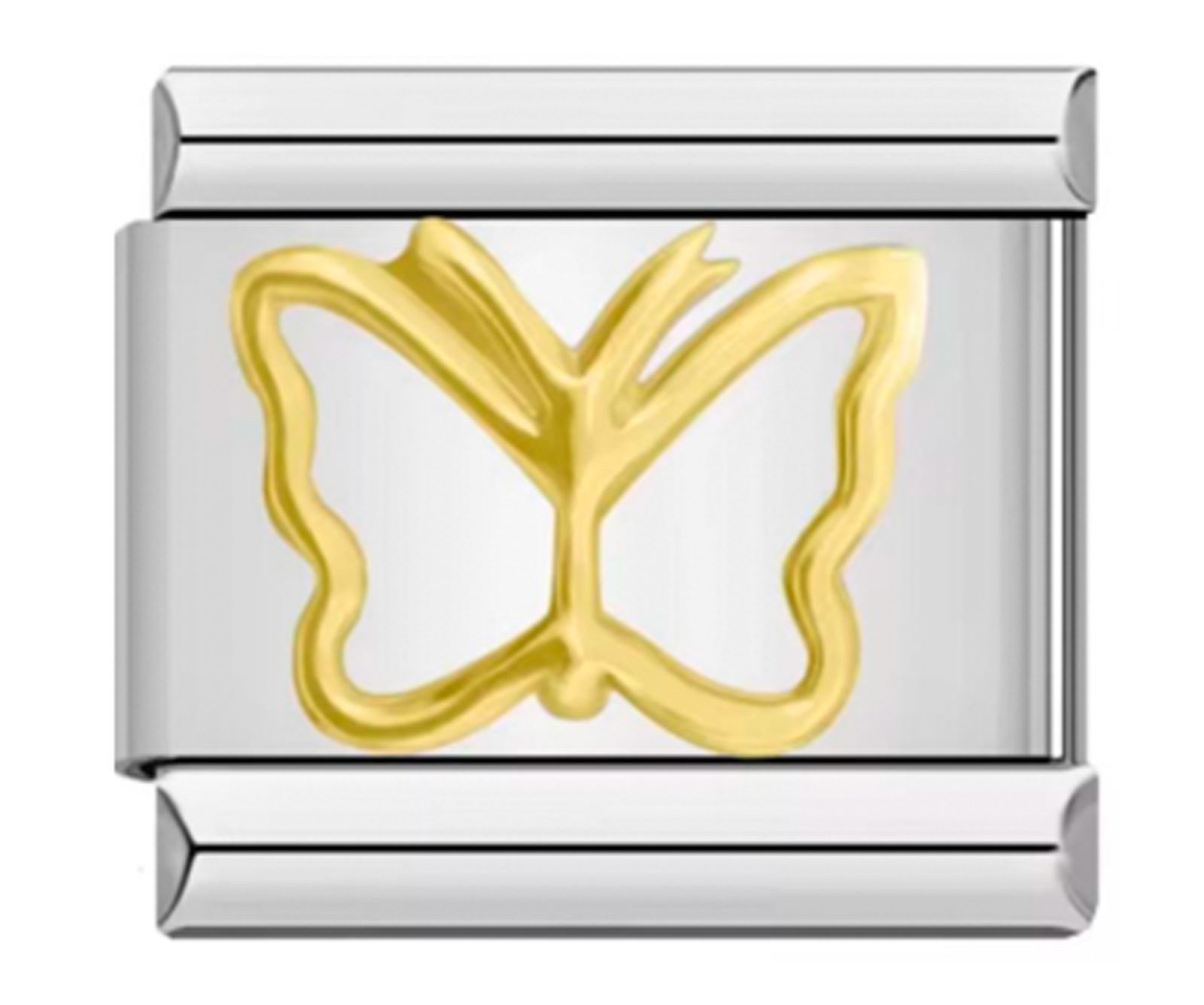 Este encantador charm en forma de mariposa dorada simboliza la transformación, la libertad y la belleza. Con su diseño elegante y su acabado dorado brillante, es perfecto para quienes buscan un accesorio que celebre la belleza natural y el cambio positivo, añadiendo un toque de lujo y sofisticación a su pulsera. 🦋✨